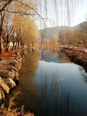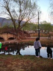 沙溪古鎮(zhèn)游人并不太多,雖已褪去了濃郁的綠色,冬日的暖陽卻令古鎮(zhèn)卻愈發(fā)古樸,如陳年普耳般厚重而回味悠長~ 正午坐在小店門口吃上一碗米線,陽光照在身上甚至有些發(fā)燙。抬起頭,忽然發(fā)現(xiàn)古老的房頂上漸已泛黃的成片的草叢,它們正和成排的白墻灰瓦以及伸手可觸的藍(lán)天白云形成不可分割的整體;腳下呢,是雪山上流下的淙淙小溪,沿著小溪往上看去便是雪山了,于是只想在這里多坐一會兒,再多坐一會兒…… 一眼望見玉津橋,便覺得是它是沙溪古鎮(zhèn)的點(diǎn)晴之筆,有了這座橋,古鎮(zhèn)仿佛也有了靈性,走在橋邊的河灘上再看,俊逸秀美的單孔橋不大也不小,它緊依著古鎮(zhèn)、遠(yuǎn)望著雪山,曾經(jīng)迎來送往送往著茶馬古道上來往的商旅。橋那邊不時經(jīng)過的車輛提醒我
