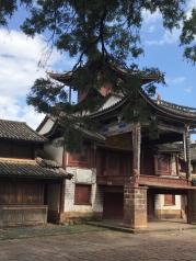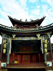 沙溪因?yàn)槠h(yuǎn),所以目前古鎮(zhèn)原貌保存的還比較完好。 沙溪鎮(zhèn)真的很小,一條寺登街就是她的全部??墒敲孔咭徊蕉枷胪O聛砩岵坏迷倮^續(xù)。 拐個彎就到了四方街,一棵老槐樹安靜地守在正中間,被外國友人修復(fù)的古戲臺線條瀟灑流暢地站在后面。他是沙溪古鎮(zhèn)的靈魂,前臺后閣,飛檐翹角的格局,屹立在藍(lán)天下幾百年。你能想象在這么閉塞的鄉(xiāng)間,遙遠(yuǎn)的清代就能有如此華美的建筑。