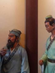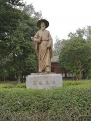 東坡書院的兩側為東園和西園。東園有一口叫欽帥泉的井,過古井,可以看見書院里的學堂,在學堂里坐著,仿佛能聽到當時東坡學生們的朗朗讀書聲。西園有一座蘇東坡的銅像,銅像后方是間陳烈館,里面記載了蘇東坡的生平和他對于海南的貢獻。