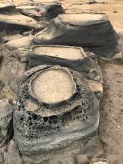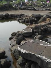 千年古鹽田還是值得去一次的,鹽工們就地取材,將海邊大片的天然火山巖石削去一半,鑿成無數(shù)淺淺石槽,像一方方硯臺,現(xiàn)在留存的規(guī)模已很小了,目前還有1000多槽(當年總數(shù)達6800多槽),蔚為壯觀,能感受到古代人的艱辛和勤勞!