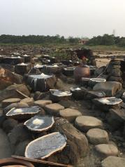 儋州千年古鹽田非常值得去,聽說現(xiàn)在只有三十多戶人家會曬這種老鹽了,很多年以后可能只看到光禿禿的大石頭在這兒,上有凹槽不知何用。只是天不作美,匆匆切匆匆走,見識到了制鹽的過程,可以說是不虛此行。
