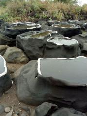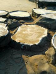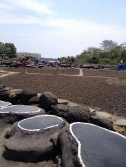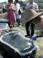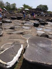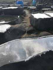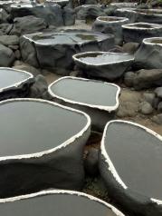 千年古鹽田是很有意思的一個(gè)地方,唯一保留下來的古老制鹽方法。傳說是一千多年前從福建的莆田過來的鹽工來到這個(gè)少雨高熱的地方,將火山巖割成一半,筑成硯臺一樣的石模,讓海水漲潮時(shí)漫過,讓太陽曬成鹽巴,現(xiàn)在鹽田傍晚時(shí)分能看到鹽工在勞作~