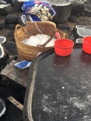 千年古鹽田是免費(fèi),可以說是不容錯(cuò)過的一個(gè)景點(diǎn),這里有很多盛放曬鹽的器皿,沿著鹽場轉(zhuǎn)了一圈,主要是一些曬鹽的火山巖石槽,但大部分都沒水,路邊有很多賣鹽和鹽焗雞的,買了就能吃。