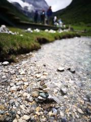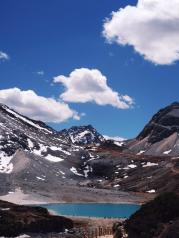 牛奶海天氣特別的好,一邊看風景一邊拍照。從游客中心真的要早走,不然趕不到最后一班班車。坐班車一個小時,做電瓶車20分鐘到達毛絨牛場,再走4個小時到達牛奶海必須12前到達不然看不到水是藍色的