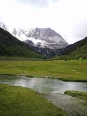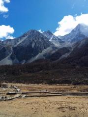 洛絨牛場是很值得一去的地方,這里可以清楚的看到央邁勇和夏諾多吉這兩座神山。天氣很好,天很藍,兩座神山聳立在那里,潔白的雪峰直插天際,陽光撒在雪山之顛,圣潔而又寧靜。