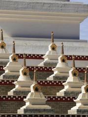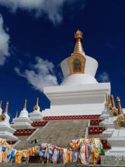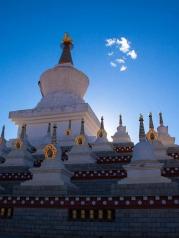 尊勝塔林公園是稻城縣人民最大的一個廣場,由108座塔組成。據說要沿著塔走三圈算是祈福的意義,不能走雙圈,因為在藏族雙圈是不夠吉利的。108座白色的塔在陽光的照耀下,金色的塔尖閃閃發(fā)光,氣勢恢宏。