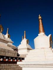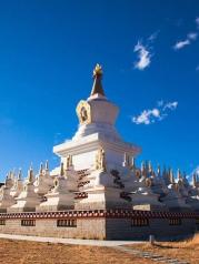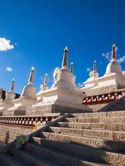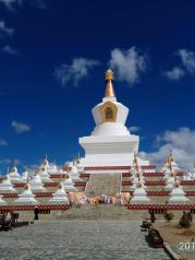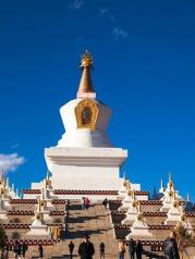 尊勝塔林也稱為白塔寺,在稻城縣城,為甘孜州最大的白塔。 白塔的主體建筑為一座高達37米的大寶塔,寶塔底三層寶座均按北京天壇祈年殿底座比例大小而興建。當地藏您每天早中晚都會在這里轉圈祈福。