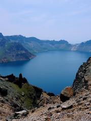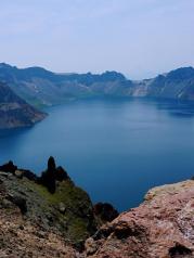 長(zhǎng)白山天池是一座休眠火山,火山口積水成湖,夏融池水比天還要藍(lán),是中國(guó)最大的火山湖,也是世界上最深的高山湖泊。現(xiàn)為中朝兩國(guó)的界湖。