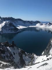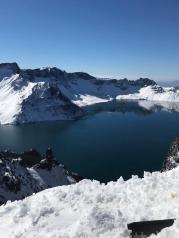 來(lái)長(zhǎng)白山天池的前一天下了雪,第二天去了北坡,天池沒(méi)有開(kāi),第三天去了西坡,爬了1400多個(gè)臺(tái)階后,終于看到了天池,天氣晴朗,藍(lán)天白雪與碧藍(lán)的天池相映成輝,美極了,不虛此行。