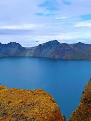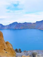 長(zhǎng)白山天池(Changbai mountain pool in the sky)是一座休眠火山,火山口積水成湖,夏融池水比天還要藍(lán);冬凍冰面雪一樣的白,被16座山峰環(huán)繞,僅在天豁峰和龍門峰間有一狹道池水溢出,飛瀉成長(zhǎng)白瀑布,是松花江的正源。 長(zhǎng)白山形成于1200萬(wàn)年前地質(zhì)造山運(yùn)動(dòng),經(jīng)過(guò)多次噴發(fā)而拓成了巨型的傘面體,當(dāng)火山休眠時(shí)涌泉溢出,形成十余平方千米的浩瀚水面。