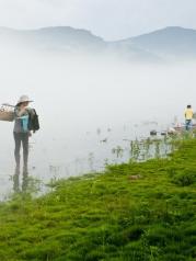桃花潭游客不多,保留著古樸的味道,河水清澈,雨后的景區(qū)云霧繚繞,仿佛走入夢(mèng)境。眺望遠(yuǎn)處的青山,坐著小船在水中飄蕩。