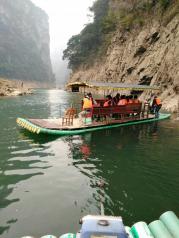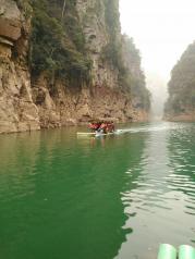 圣堂湖坐的是竹排游湖,湖夾在兩座山中間,風(fēng)很大,適合夏天游玩,山上有霧。湖水青,山峰險(xiǎn),這里的石也很獨(dú)特,真的是世外桃源。就是船上沒有導(dǎo)游,稍顯無趣。去之前幾天一直下雨,從上游沖下來很多垃圾。