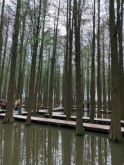 李中水上森林公園面積挺大的,來這里的游客也蠻多的,這里建成了較大的停車場,可以停放多輛大巴車。這里多年前還是荒灘,后來建成了人工生態(tài)林,現(xiàn)在這里的樹木以池杉、水杉居多。這里生態(tài)環(huán)境非常好,景區(qū)也搞了不少旅游項(xiàng)目,有的還蠻吸引人的。