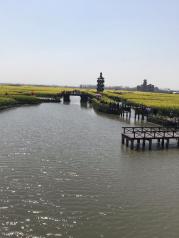 坐火車到泰州,再換車到千垛景區(qū)。雖然舟車勞頓,但進(jìn)入浩瀚無垠的油香花景區(qū),登上觀光塔,乘上手搖船穿梭花田之間,覺得一切都值。在水上看油菜花海也是很有趣的事情啦!想去的話還是應(yīng)該提前問一下天氣情況才好。