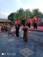 我們一行人來到清明上河園來參觀。感覺這里很大,有橋、人造湖、美食城,騎馬場等等。每天都有定時定點的民俗活動表演如氣功噴火、王員外招婿、大宋?東京保衛(wèi)戰(zhàn)等等。這里最著名的舞臺表演當(dāng)屬大宋?東京夢華,是在園內(nèi)的湖中央演出。據(jù)說有700位演員同時參與演出,挺壯觀的。另收門票,每晚8點開始,時長一個小時。整體感覺不錯!
