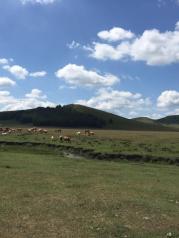 相對(duì)于草原,烏蘭布統(tǒng)屬于規(guī)模較小的草原,說是草原還不如說是山地草甸,長(zhǎng)滿草的小山包,星星點(diǎn)點(diǎn)的草原特有水泡子,藍(lán)天、白云,過往的馬匹,人造游戲場(chǎng)景,對(duì)于第一次游覽草原 的朋友還是不錯(cuò)的景致。