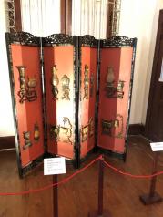 進入王宮博物館要脫鞋,儲物柜不多,什么東西都不讓帶,儲物柜房間的大叔態(tài)度很差,問他平板里面有孤獨星球需要看簡介能不能帶進去,他不耐煩地讓我們看墻上的說明,就是不讓帶。手機我看到有人偷偷帶進去,單反就太大了。閃光燈對文物是有傷害的,尤其是對有機質(zhì)文物,而且一旦有一個人閃了一下,就會有一大堆人跟風,控制不住,所以不帶是應該的。所以只能拍個門口。里頭格局應該就是國王住的地方,議事廳,接待室,臥房書房,老撾國王應該比中國皇帝簡樸。還有一些各國送來的禮物,中國很多。有一點,議事廳挺漂亮的,金碧輝煌,但是老撾人也就喜歡用彩色玻璃拼貼出閃閃發(fā)亮的效果,并不是真金白銀那么珍貴的東西