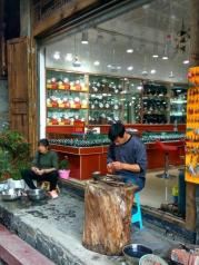 在磨西古鎮(zhèn)歇腳。磨西在羌語里是寶地的意思。 古鎮(zhèn)所在的那條街,一頭是木制的古建筑群,街上也有很多酒吧,白日里,已有輕歌曼語穿了出來。 盡頭是長征時期毛澤東曾經(jīng)入住過的天主教堂。 街的另一頭,未經(jīng)修飾的普通商業(yè)街,還未落日,街上兩邊的食鋪里,烤全羊,竹筒飯已經(jīng)準(zhǔn)備起來了,一場夜的盛宴即將開啟。