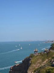 蓬萊閣蓬萊閣感覺不是很大,作為AAAAA景區(qū)還算好吧。古建筑群人很多道教文化色彩很濃。在炮臺和古樓上看海還是很漂亮的。就是人太多。后面的田橫山風景不錯。棧道修的很好,就是水感覺不是很好比前些年差些。從田橫山棧道后端坐快艇回去挺刺激。風景也不錯。
