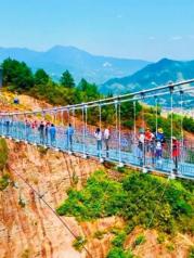 石牛寨位于湖南平江縣大坪鄉(xiāng),是國家AAAA級景區(qū)。景區(qū)內(nèi)玻璃橋長約300米,垂直高度達180米,以奇險、刺激著稱,故又名“好漢橋”。 好漢橋是全世界第一條全透明玻璃橋。 景區(qū)內(nèi)的絕壁上修建了長約2公里的棧道。棧道貫穿于山石之間,常常處于山高險要、半空之處,猶如一條空中走廊,站在上面,可以俯瞰大地,一覽眾山小。棧道中有50米長的玻璃棧道。 石牛寨最高峰海拔520多米,山腳下海撥180米。爬山高度只有340米,從入口進去,徒步登上玻璃橋,然后從棧道下山,經(jīng)過玻璃棧道,再下山大概需要4個多小時。
