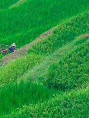 堂安梯田,一片綠油油的,相當(dāng)養(yǎng)眼,稻子還沒(méi)有成熟,但是看著已經(jīng)很喜人了~~有的田里還能看到簡(jiǎn)單粗暴的,沒(méi)有稻草的“稻草人”,耿直得有點(diǎn)萌哈哈哈。當(dāng)然還有在田間勞作的當(dāng)?shù)厝耍嵝盐覀冞@不是一個(gè)“風(fēng)景區(qū)”,而是實(shí)實(shí)在在的生活。偷拍了一個(gè)不認(rèn)識(shí)的妹子……她走在田埂上的畫(huà)面真的讓我好喜歡呀!瞎逛了一段時(shí)間,找到一個(gè)小亭子歇jio~在這里,可以俯瞰更大片的梯田!雖然我們到的時(shí)候沒(méi)有傳說(shuō)中的耶穌光,但這種開(kāi)闊的場(chǎng)景,已經(jīng)!讓人!特別!舒服了!