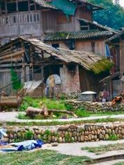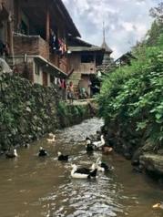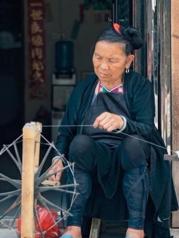 黃崗侗寨平靜的過(guò)分 ,此起彼伏叮叮當(dāng)當(dāng)?shù)那么蚵?,循聲而至,原是在做侗布打亮,門(mén)里是一臺(tái)手搖紡線機(jī)和一臺(tái)手動(dòng)織布機(jī);屋旁橫排著幾個(gè)桶從新鮮采集的葉子到發(fā)酵成染布的顏料;偶爾路過(guò)一兩個(gè)村民 有在村里小水渠邊洗漱的女人和下田歸來(lái) 背簍裝著鴨子的老人;這雨落成絲 ,鐘樓下烤火的人們各自樂(lè)呵著,正挨著是一棟300年歷史的木結(jié)構(gòu)三層小樓;村在霧里 霧繞村里 話不盡的愜意。