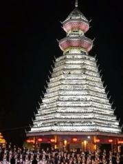 小黃侗寨的商業(yè)化氛圍很少,村民能用普通話交流的不多,基本保持了原生狀態(tài)。作為侗族大歌的發(fā)祥地,這里每天晚上都有免費(fèi)的大歌表演,晚上8點(diǎn)開(kāi)始。座位就是一排木頭板凳,其實(shí)也沒(méi)什么游客,都有坐的。廣場(chǎng)鼓樓彩燈亮起分外好看。