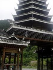 進(jìn)入肇興侗寨,右邊是依山而建的層層疊疊的吊腳樓!左邊是一片湖濱。湖濱叫做”天鵝湖“ 。昨晚一場(chǎng)暴雨,湖水上漲,上游沖下的河水,使碧清的湖水變成了黃色,有點(diǎn)遺憾,否則景色更美!穿寨而過(guò)的小河,在入湖處有一座 ”風(fēng)雨橋“,橋旁邊,還有一座水車造型,背景是蒼翠的青山,前面是平靜的湖水,景色十分漂亮!湖中一塊巨石,刻有 ”天鵝湖“ 三字!湖中還建有一座觀光棧橋,木板的橋面,古藤造型的欄桿,配合湖景更加漂亮!還有民族服裝租賃。我要是女同胞,一定租一件,借這美景拍攝一張帶回家! 肇興侗寨四面環(huán)山,寨子建于山中盆地,一條小河穿寨而過(guò)。肇興侗寨在穿寨而過(guò)的小河