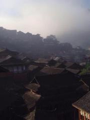 走到西江千戶苗寨的盡頭是一片田園風(fēng)光,即使旺季也很少有人來里。過河有去觀景臺的電瓶車站點,走去觀景臺吧,路并不長,一路上有幾個點眺望風(fēng)景的視野也是不錯的。到達觀景臺,等候夜幕降臨,西江的大戲才剛剛開始。千百盞燈火從木質(zhì)吊腳樓的屋檐下亮起,星星點點,勾勒出整個苗寨的輪廓,是一個牛頭的形狀,很難想象一座大山里的寨子,有如此燈火通明的景象。清晨再次來到觀景臺,薄霧籠罩著苗寨