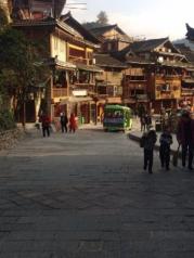 從江站下車乘中巴車10元一人到肇興侗寨,車程大約15分鐘左右,其間在侗寨游客中心下車購票,淡季4折40元一人,冬季寨中上午11點,下午5點各有一場侗族歌舞表演。吃飯住宿都很方便,很有民族特色,值得一游。