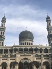 回到了西寧,東關(guān)大清真寺如雷貫耳,這是西寧也是西北四大的清真寺之一,必須去的,外門是清真寺的月牙,與別的清真寺無異,但朝里走去,就別有洞天,寬闊的場(chǎng)院后是一座一派中原的建筑,飛櫞翹角,就別有洞天。