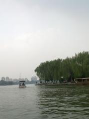 當(dāng)時(shí)4月份去的,大明湖很大,很多人在湖上游玩,坐船可以到湖中島上玩。4月份柳絮飛揚(yáng),柳葉也長出了,吹著湖上吹來的風(fēng)特別好。很容易想到夏雨荷哦。