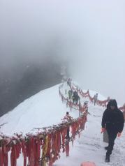 第一次去華山正趕上下雪,隨著纜車越升越高,我的情緒都快崩潰了!山路狹窄,山勢陡峭,雪天路滑,我又選了西上北下的路線,一路上小心翼翼,生怕一失足墜下山崖。最后我選了不去東峰和中鋒,直奔北峰索道,雖然還要坐索道,但我也是豁出去了,顯然有華山最好和幾個朋友一起,而且千萬不要冬天來!