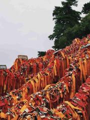 法門寺,是佛祖釋迦摩尼的真身舍利子存放的地方,據(jù)說1981年法門寺一半坍塌,在修繕時發(fā)現(xiàn)了寺下的唐代地宮,釋迦摩尼的真身舍利就存放在地宮里。舍利曾兩次大放光芒,從此法門寺成了信徒們朝圣的地方,馳名中外。走法門寺要左門進右門出,一進門就會看到18羅漢的銅像,高大威嚴,形象逼真,好像在守護者這座塔。在路兩旁有各種菩薩的鎏金銅像:騎著獅子的大悲觀菩薩、坐著蓮花寶座的日光遍照菩薩、月光菩薩、凈瓶觀音、文殊菩薩、大妙相菩薩等等。寺下面的地宮里面金碧輝煌,能看到釋迦摩尼的舍利真幸運??!人們都在舍利面前虔誠的祭拜。