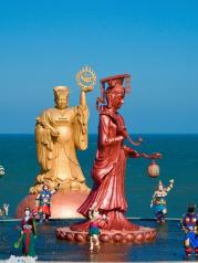 成山頭這里真的很大,風(fēng)景還是不錯(cuò)的,就是人為的景點(diǎn)破壞了它的純天然。全世界的神仙,各個(gè)信仰的神仙都被聚集在了這里,大概是當(dāng)?shù)厝四芟氲降?/div>