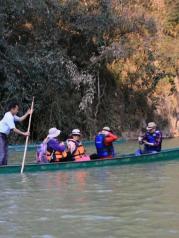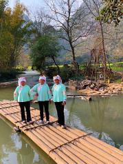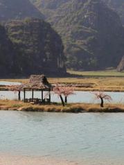 壩美村四周群山環(huán)抱,幽靜秀美。進(jìn)入景區(qū)需乘3次船,坐2次馬車(chē)。坐上豬槽船,穿越2公里長(zhǎng),幽暗天然的石灰溶巖水洞,你會(huì)有豁然開(kāi)朗,柳暗花明又一村的感覺(jué)。春季,壩美開(kāi)滿桃花更像“世外桃源”。