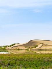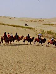 游覽羅布人村寨除了探秘古老的羅布人民俗文化外,另一個看點就是塔克拉瑪干沙漠。村寨的南面是塔克拉瑪干沙漠,塔克拉瑪干沙漠,維吾爾語意“進(jìn)去出不來的地方”,人們通常稱它為“死亡之海”。它位于南疆塔里木盆地中心,是中國最大的沙漠,僅次于非洲撒哈拉大沙漠,是全世界第二大流動沙漠。連綿起伏,茫茫無邊,洶涌澎湃。騎“沙漠之舟”涉沙海深處,看大漠風(fēng)光,聽駝鈴遺韻,悠悠情懷,心曠神怡。登上沙山,坐觀中國第一大沙漠的大漠落日,定有一番不同的感受。