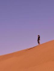 到達(dá)塔中時已經(jīng)是晚上七點多,在旁邊的川菜館吃了飯,就急匆匆的拿著相機(jī)向塔克拉瑪干沙漠深處跑去,已經(jīng)迫不及待的欣賞沙漠日落了。 白天,沙漠的氣溫非常高,雖然太陽剛剛開始下落,但沙漠的地標(biāo)氣溫還是非常高,赤腳踩在沙子上非常燙腳。 日落前的塔克拉瑪干,金黃色的沙漠被一輪要消失的紅日染成了紅褐色。 走進(jìn)死亡之海,根本什么也得不到。如果幸運的話,可能會遺失點什么。如果塔克拉瑪干能夠席卷走那點兒可憐的高貴之處。