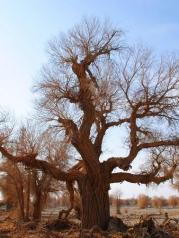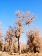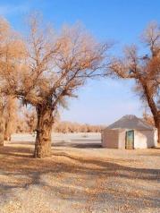 塔克拉瑪干沙漠,結(jié)束了庫車大峽谷的行程,我來到了馬路上,安靜的等待著下一輛可以搭我西行的汽車,終于,一輛拉石材的貨車停了下來,問了目的地,去往和田,我沒有猶豫就上車了,就這樣來到了塔克拉瑪干的沙漠公路,汽車碾壓著干渴的戈壁,大漠籠罩在蒼藍(lán)的天穹下。稀拉拉的芨芨草懶洋洋地伏在礫石上,順風(fēng)擺動著嬌小的身軀。間或有幾棵細(xì)弱的駱駝刺,被火辣辣的太陽烤得幾近枯焦。沙棗們佝僂著營養(yǎng)不良的脊背,呻吟著,一切顯得那么蒼涼、寂寥。西北風(fēng)夾裹著碎沙一陣橫掃,曠野里一片哀鳴,生命在這里顯得如此脆弱。 驀地,一片身軀巨大的胡楊林映入眼簾,我的心里一陣悸動。那片胡楊,有的生,有的死,有的卻是雖死猶生。生,生得昂揚,死,