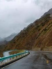 獨庫公路,傳說中必走的公路之一 沒感覺多驚險 只是偶有落石 風(fēng)景很好 雪山明月跟隨 氣溫從二十度到七度 變化比較大 山頂積雪有兩三米后 美景驚艷 驚險一般