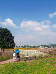 10月下旬梅渚鎮(zhèn)梅渚古村邊的150畝花海綻放的時(shí)候。大片的波斯菊、醉蝶花、萬壽菊、千日紫、粉黛亂子草迎著秋風(fēng)起舞,引來游人無數(shù)。據(jù)說,早年梅諸建村時(shí)因村中多梅樹而得名。被花海包裹的村莊,行走在滿是芬芳的花叢里,這種感受是城里人很難享受得到的。