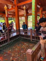 曼聽公園是云南最著名的一座公園,一定要來看看的!我們來的那天天氣很好,游人也不算太多。進(jìn)門的廣場上就是一座雕像,我們一眼就認(rèn)出了他是和藹可親的周總理!與之合影后坐著觀光車首先到了放生亭,亭子建在人工湖邊,沿著漂亮的長廊來到亭中央就是放生池了,有美麗的傣族姑娘協(xié)助游人放生魚兒,整個放生亭傣式風(fēng)情十足,值得一走!