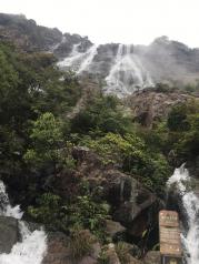 白水寨是個(gè)不錯(cuò)的景點(diǎn),來(lái)這里可以說(shuō)真的純粹就是爬山和看瀑布,瀑布真的很壯觀,就是周末來(lái)這里的人比較多,大部分人爬到4999級(jí)就走了,我也沒(méi)往上爬,感覺(jué)走樓梯走得很累,如果有纜車就好了!