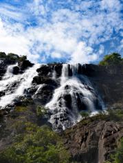 白水寨風(fēng)景優(yōu)美,空氣清新,修建在白水寨山丘陵線上的是被譽(yù)為“天南第一梯”的登山步徑。它橫跨三座高山,連接兩大天池,全長(zhǎng)6.6公里,共有9999級(jí)石階。游客沿此路登山,可一站站拜訪仙瀑美景。尤其是行至2199級(jí)的親瀑亭或是3299級(jí)的沐瀑亭,感受猶為震撼,值得再次擁有。